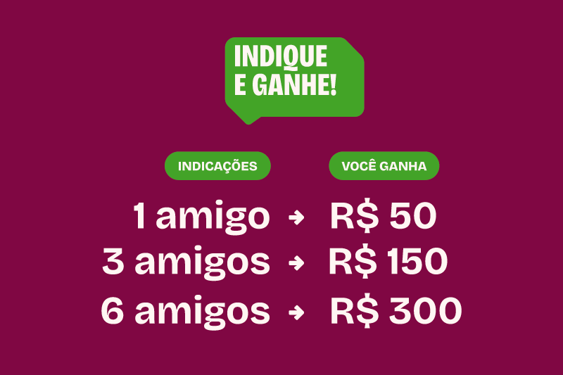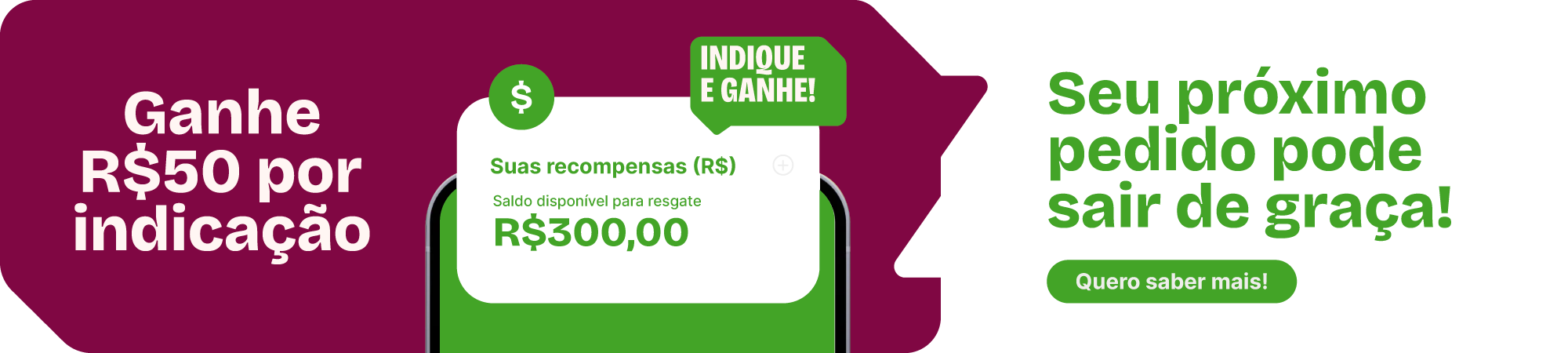 Cada amigo que você indica pra Cumbuca Boa vira R$50 pra você. É simples: compartilhou, pediu, ganhou. Quanto mais indica, mais acumula pra aproveitar seus próximos pedidos.