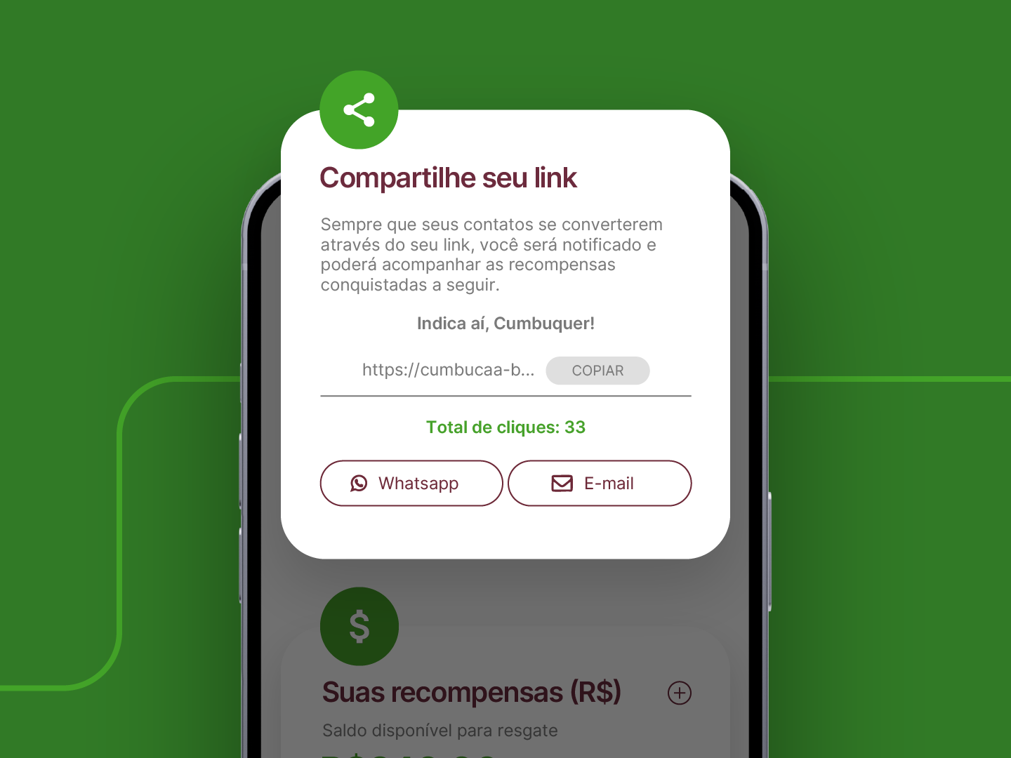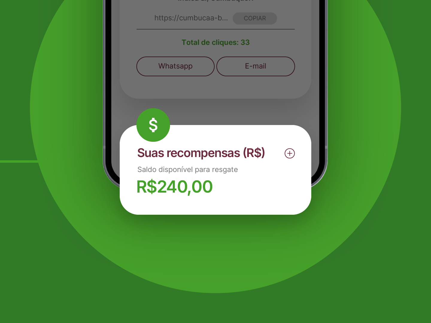 - Você acumula recompensas de R$80 a cada 1ª compra com o seu link.
